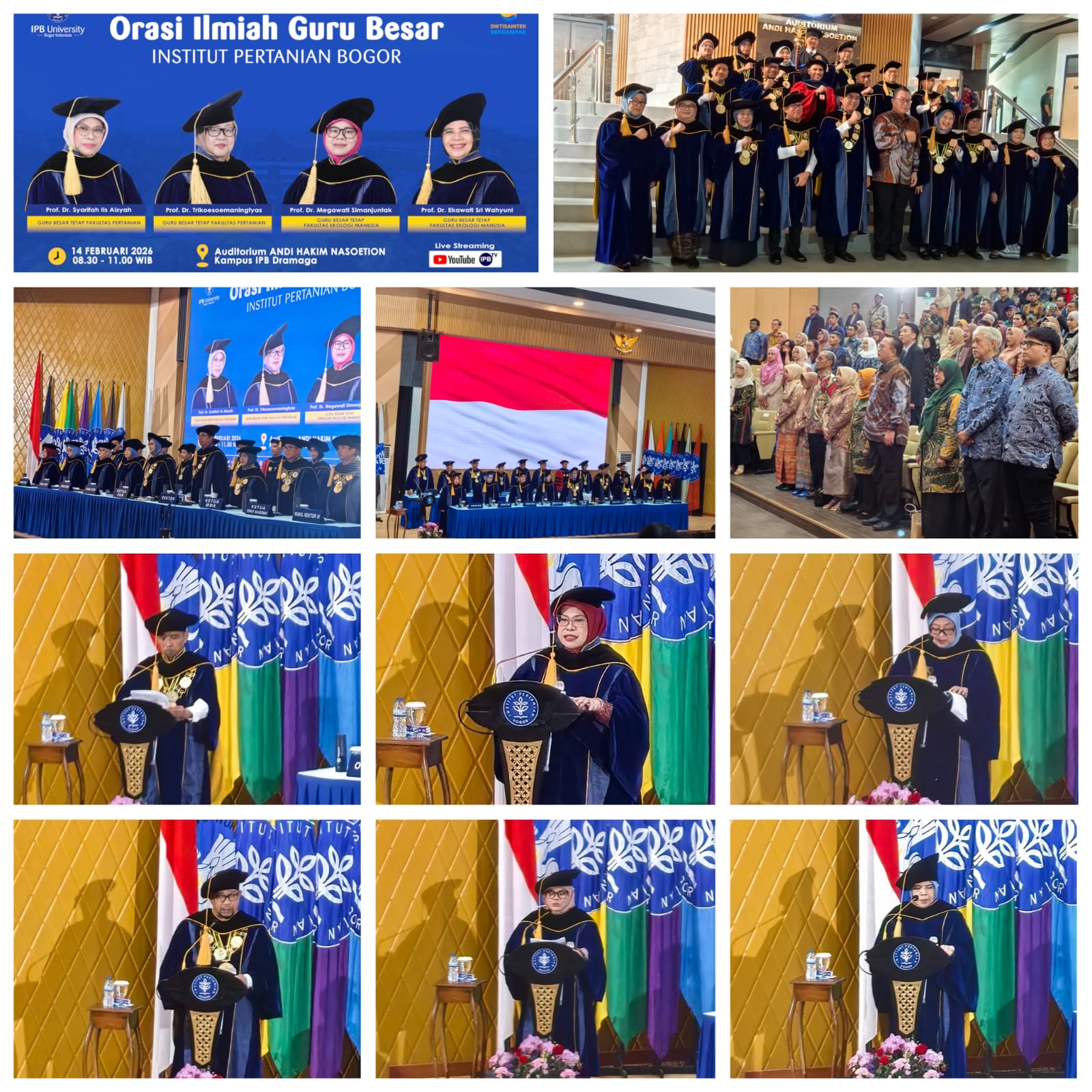 IPB University kembali menegaskan komitmennya dalam pengembangan ilmu pengetahuan melalui penyelenggaraan Orasi Ilmiah Guru Besar pada Sabtu, 14 Februari 2026, pukul 08.30–11.00 WIB. Kegiatan orasi ilmiah dilaksanakan secara luring di Auditorium Andi Hakim Nasution dan daring melalui tautan ipb.link/orasiilmiah-ipb. Pelaksanaan orasi berlangsung khidmat, sarat makna akademik, dan dihadiri oleh pimpinan organ IPB (MWA, Rektor, SA, DGB), sivitas akademika, keluarga orator, serta para undangan. Orasi ilmiah dibuka secara resmi oleh Rektor IPB University, Dr. Alim Setiawan Slamet. Selanjutnya acara orasi ilmiah dipimpin oleh Ketua Dewan Guru Besar (DGB) IPB University Prof. Dr. Evy Damayanthi. Orasi Ilmiah Guru Besar menjadi ruang refleksi dan diseminasi gagasan strategis yang berkontribusi nyata bagi kemajuan ilmu pengetahuan serta pembangunan bangsa.