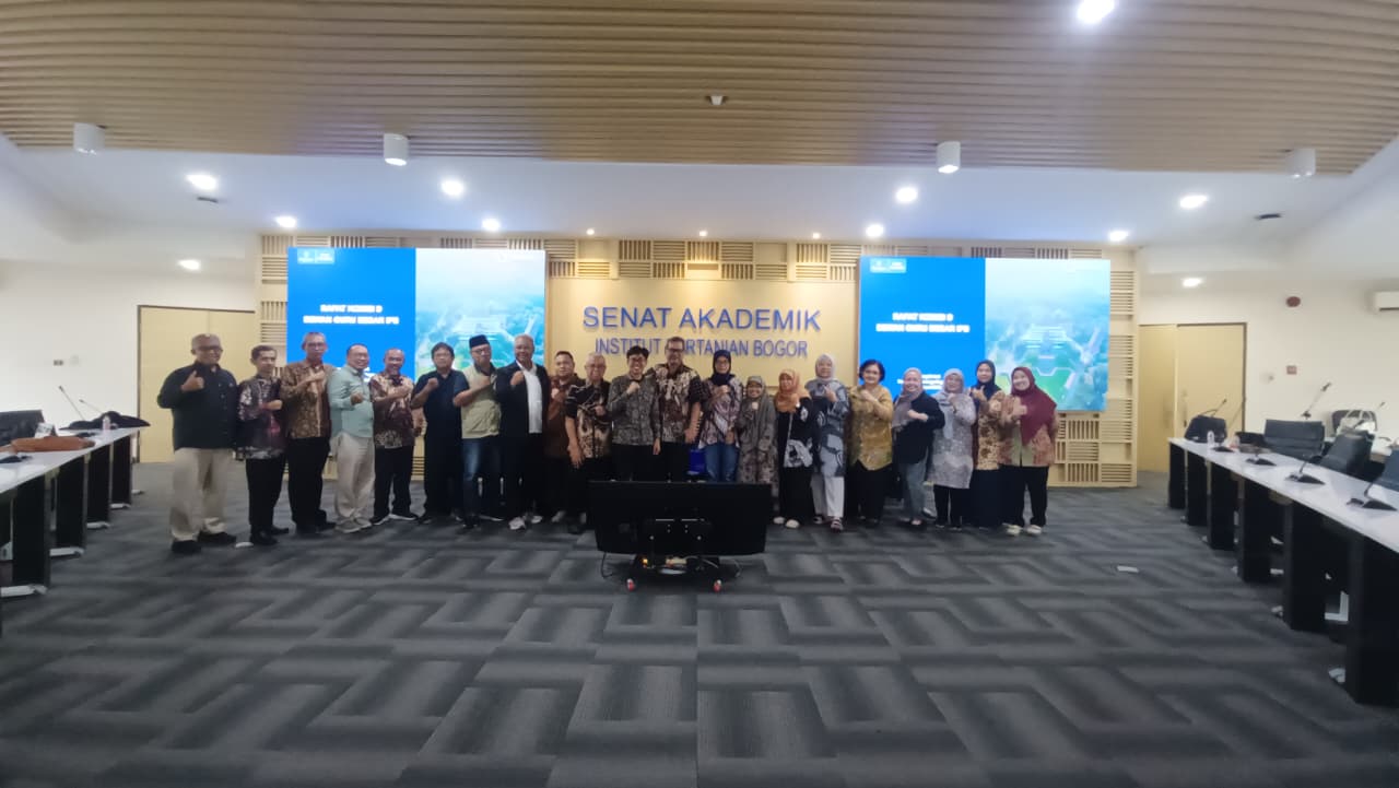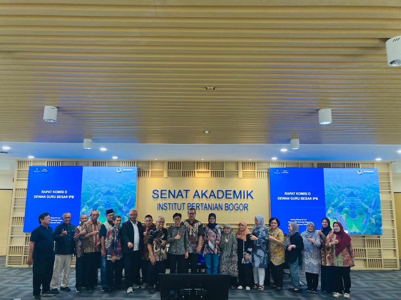 Rapat Komisi D Dewan Guru Besar IPB telah dilaksanakan pada 4 Februari pukul 12.30–15.00 WIB bertempat di Ruang Sidang Senat Akademik AHN Lantai 6 IPB University. Rapat diawali dengan sambutan Ketua DGB yang dalam kesempatan tersebut diwakili oleh Sekretaris DGB, Prof. Dr. Agus Setiadi. Dalam sambutannya disampaikan arah strategis Komisi D periode 2026–2030 yang kini mengemban mandat baru dengan tugas pokok dan fungsi (tupoksi) pengembangan masyarakat dan kolaborasi global. Rapat dipimpin oleh Ketua Komisi D Prof. Dr. Asep Gunawan didampingi Sekretaris Komisi D Prof. Dr. Yeni Herdiyeni, serta dihadiri sekitar 35 Guru Besar. Setelah pemaparan program kerja oleh Ketua Komisi, kegiatan dilanjutkan dengan diskusi aktif bersama seluruh anggota untuk memberikan tanggapan, penyempurnaan, dan usulan strategis bagi program Komisi D tahun 2026. Suasana rapat berlangsung penuh kekeluargaan, namun tetap serius dan progresif dengan berbagai gagasan konstruktif dari para Guru Besar yang hadir.
